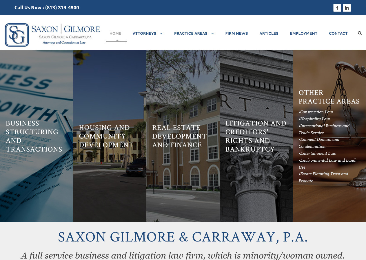 Saxon, Gilmore, Carraway & Gibbons, P.A. specializes in litigation involving business and construction law. Bernice Saxon, Managing partner, has worked in litigation for years, and has the experience and expertise to represent you. Her website, http://www.saxongilmore.com/, was developed by Netprofession.